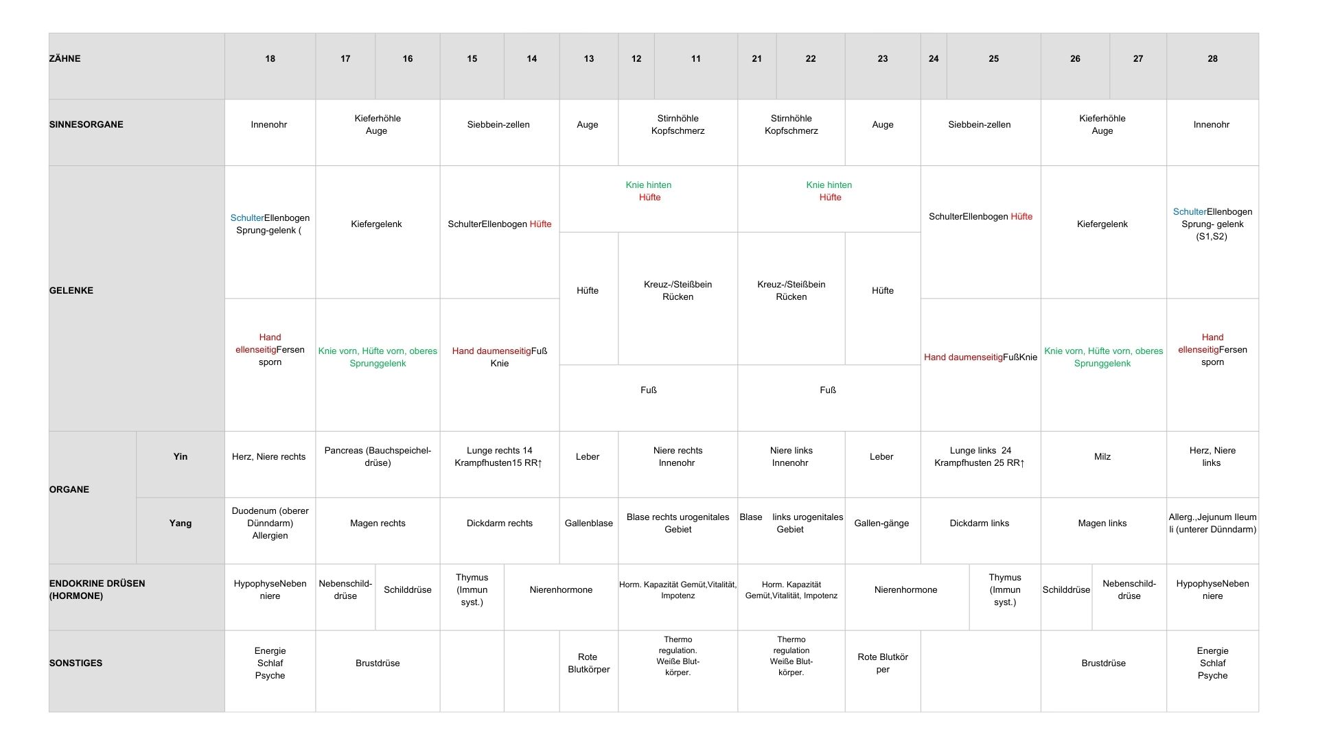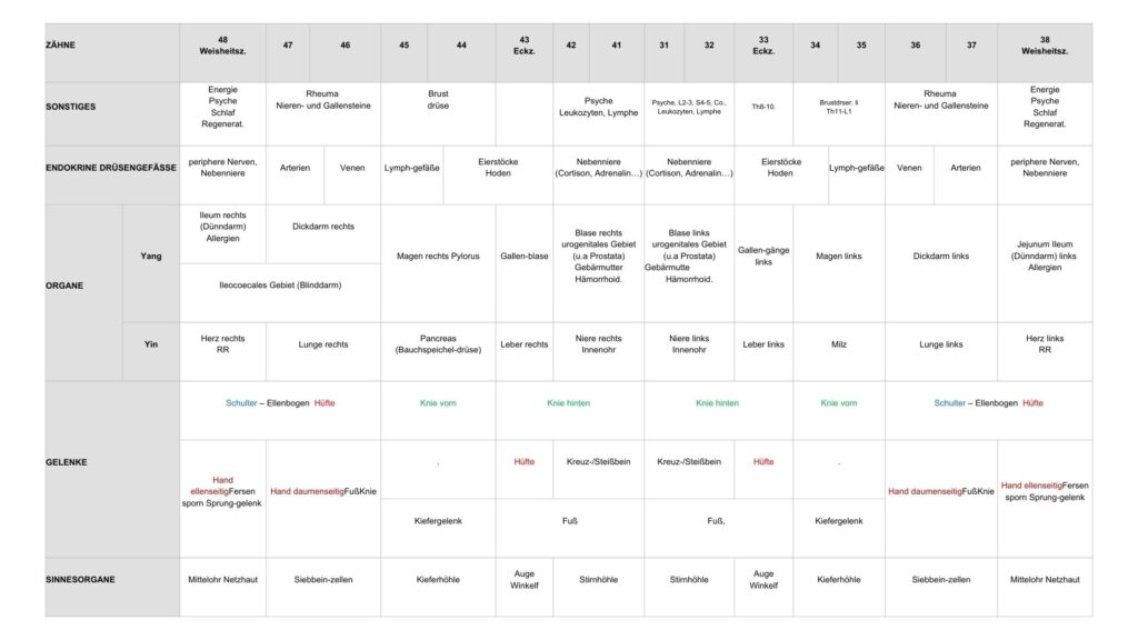 Jeder Zahn ist mit einem bestimmten inneren Organ, einer Hormondrüse,